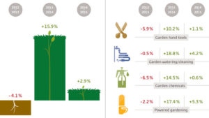 Les ventes à la distribution, professionnelle tout d’abord, ont surperformée avec une progression de 8.8% en 2016 vs 2015, en valeur, avec la fulgurante progression des outillages sur batterie (+22.1% vs 2015). Sur le segment de la distribution grand public, les ventes réalisées sur le marché du bricolage ont augmenté de 3,6% en valeur vs 2015. Secimpac relève une relative stagnation de 3.5% en cumul en 2016 vs 2015 sur le marché des outillages motorisés pour l’entretien des espaces verts.